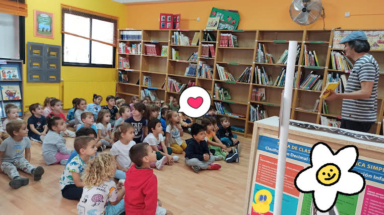 2. Sesiones de apertura en horario de mañana. Todos los cursos, organizados por niveles han disfrutado de una sesión de cuentacuentos protagonizada por Marco Flecha y Lola Jiménez, que ha sido subvencionada por el colegio y por el AMPA al 50%.
