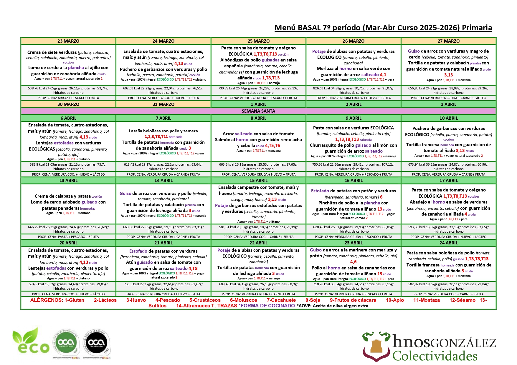 Menú Primaria